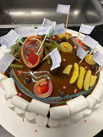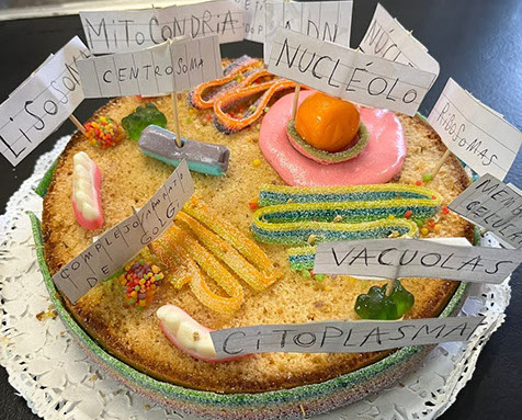 En el marco de la materia Biología, los alumnos de 2º año A y B elaboraron maquetas tridimensionales de la célula eucariota animal, utilizando golosinas como recurso didáctico para representar la estructura y función de sus organelas.