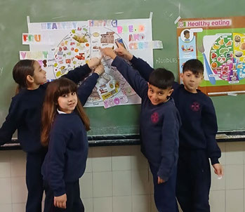 Los alumnos de 3° grado A de la Escuela Primaria trabajaron con el Plato Saludable (Healthy Eating Plate), una guía elaborada por la Harvard School of Public Health, para aprender a identificar los grupos de alimentos y reflexionar sobre la importancia de una alimentación equilibrada y consciente.