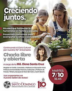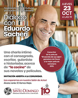 Como cierre del Ciclo Cultural por los 110 años del Santo, el jueves 23 de octubre se llevó a cabo en nuestro Salón de Actos un encuentro enriquecedor con el reconocido escritor, guionista, historiador y profesor de nuestra casa, Eduardo Sacheri.