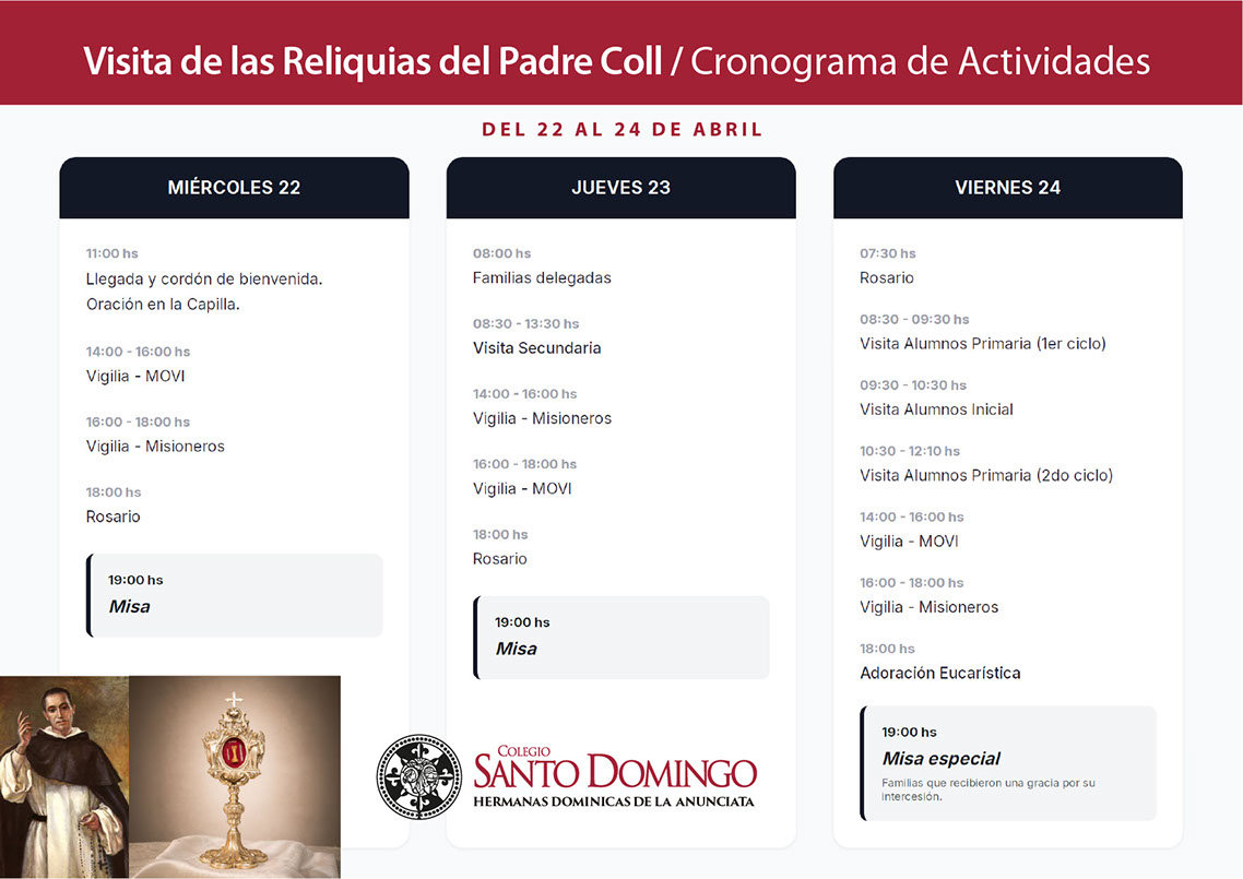 Más allá de su valor material, la presencia de las reliquias nos invita a encontrarnos con el espíritu y la misión del Padre Coll, a dejarnos inspirar por su vida y a renovar, juntos, nuestro compromiso con la educación, la fe y el servicio.