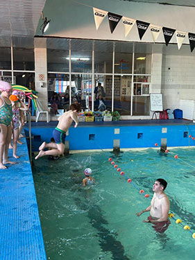 Los alumnos y alumnas del Nivel Primario participan cada martes de las Clases de Natación en la pileta del Club Estudiantil Porteño, bajo la coordinación del equipo de CROL.