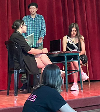 En la clase abierta de Literatura, los alumnos de 6º año de la Escuela Secundaria presentaron las siguientes obras: La espera trágica de Pavlovsky, Cuánto vale una heladera de Piñeiro y Gris de ausencia de Cossa.
