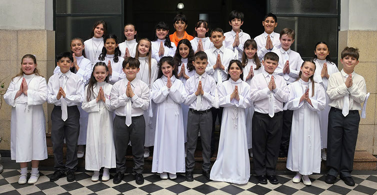 El sábado 12 de octubre, nuestros alumnos de 5º grado de la Escuela Primaria vivieron un momento único al recibir por primera vez a Jesús en el sacramento de la Eucaristía.