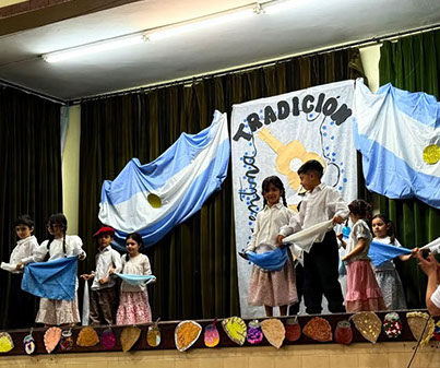 Para celebrar el Día de la Tradición, los alumnos de 1º grado de la Escuela Primaria, junto a sus docentes Mariana y Constanza, nos regalaron un hermoso momento compartido en comunidad.