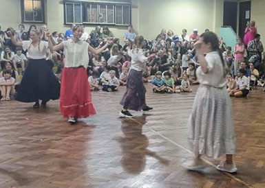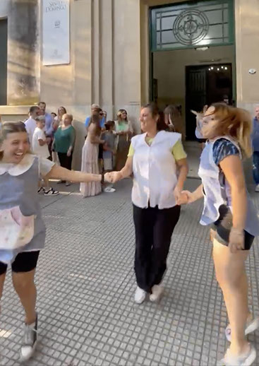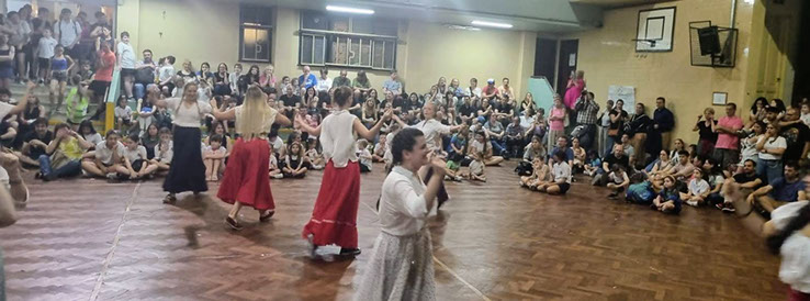 Finalizamos el encuentro con las estudiantes de 3º año invitándonos a bailar danzas folklóricas, de ese modo compartieron alegría y argentinidad.